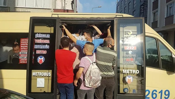 Küçükçekmece Mehmet Akif Mahallesi, Aşık Veysel Caddesi üzerinde Şirinevler-Başakşehir hattında çalışan minibüsler, koronavirüs ile mücadelenin en önemli adımı olan 'sosyal mesafe' ve 'kapasite azaltma' kurallarını hiçe sayıyor. Salgın tehlikesine aldırmayarak balık istifi yolcu alınan minibüslerde vatandaşların, yolculuklarını kapılardan sarkarak yapması da, tehlikeli görüntülere sahne oldu. Çevre sakinleri ise salgın sürecinde, normalden fazla yolcu taşıyan ve kurallara uymayan minibüs şoförlerine isyan etti.