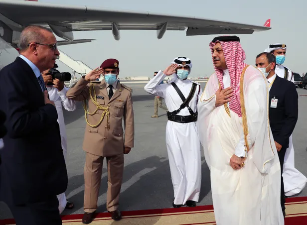 Erdoğan ile Hazine ve Maliye Bakanı Berat Albayrak, Milli Savunma Bakanı Hulusi Akar, İletişim Başkanı Fahrettin Altun, Cumhurbaşkanlığı Sözcüsü İbrahim Kalın ve MİT Başkanı Hakan Fidan da Katar'a geldi.