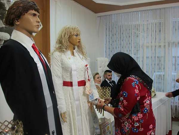 Koronavirüs salgını nedeniyle düğünlere ara verilmesinin ardından 1 Temmuz itibariyle düğün salonlarına sosyal mesafe kuralı, maske ve dezenfektan kullanma şartı ile izin verilmesinin ardından Tekirdağ'ın Saray ilçesinde bir düğün salonu tedbirler kapsamında gelin damada takı sırasında temas olmaması için manken gelin- damat uygulaması yaptı. Cansız mankenlere gelinlik ve damatlık giydirilmesiyle ilk düğün yapıldı. Sinem ve Sinan Dağ çifti salona geldiklerinde girişte cansız gelin ve damadı görmesiyle önce şaşırdı. Düğüne gelen konuklar ise gelin ve damada temas etmeden tebrik etti. Takı töreni de gelinle damadın yanına konulan gelinlik ve damatlık giydirilen cansız mankenlere takılarak gerçekleştirildi.