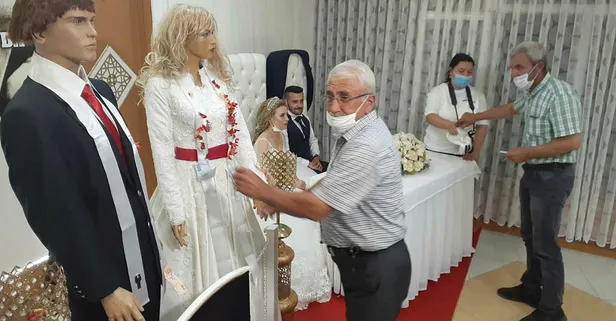 Koronavirüs tedbirleri kapsamında kapatılan düğün salonları 1 Temmuz itibarıyla tekrar faaliyete geçti. Tekirdağ’ın Saray ilçesinde, hayatlarını birleştiren Sinem ve Sinan Dağ çiftinin düğünleri koronavirüs tedbirleri kapsamında yapıldı. Düğünde takılar gelin- damat yerine, yanlarına konulan cansız mankenlere takıldı. Düğüne gelenler cansız mankenleri karşılarında görünce kısa süreli şok yaşadı.