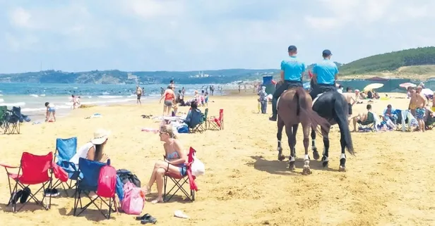 Atlı ekipler, dün İstanbul Kilyos Sahili'nde denetim yaptı. Maske ve mesafe kuralına uymayanları uyardı.