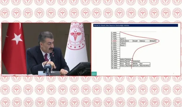 Son dakika haberi... Koronavirüs Bilim Kurulu saat 17.00’de video konferans yöntemiyle toplandı. Toplantının ardından Sağlık Bakanı Dr. Fahrettin Koca basın açıklaması yaptı. Bakan Koca, "Çok sayıda vakanın kaynağının düğünler olduğunu gördük" dedi. Koca, "Maske dünyada en önemli tedbirdir. Vakaların tırmandığı ülkeler tedbirlerin ya terk edildiği ya da yetersiz olduğu ülkelerdir. Yaşayıp geldiğimiz hayat bu tedbirlere göre düzenlenmiş bir hayat değildir." açıklamasında bulundu. Bakan Koca, "Bugünkü vaka sayıları; bin 41, vefat eden vatandaş sayısı 22, bugün yapılan test sayısı 49 bin 302, iyileşen hasta sayısı ise 2 bin 219." dedi. Koca, "İstanbul'da pikin 5'inci haftada tamamlandığını görüyoruz. Anadolu'da ise birinci dalga hala devam ediyor. Anadolu'da daha piki tamamlamayan iller var." açıklamasında bulundu. Kurban Bayramında alınacak tedbirlere değinen Bakan Koca, "İl bazında kısıtlamalar olabilir" dedi.