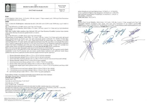 Beşiktaş Belediyesi encümeni, Soner Yalçın'ın kale gibi korunan villasındaki kaçak yapılaşma ile ilgili iki kritik karar aldı. Belediye encümeni 23 Haziran tarihli kararında, mal sahibi Soner Yalçın'a oybirliği ile 70 bin 512 lira para cezası kesti.