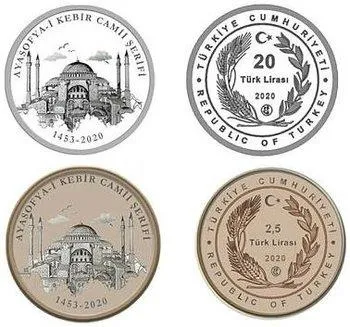 Ayasofya Camisi'nin yeniden ibadete açılmasına özel 1 TL'lik tedavül para ile 5 bin adet gümüş ve 10 bin adet bronz hatıra para basıldı. Hazine ve Maliye Bakanı Berat Albayrak, Twitter hesabından yaptığı paylaşımda "Darphanemiz tarafından basılan 'Ayasofya Camii' özel paramızla tarihe bir not daha düşüyoruz" ifadesini kullandı.