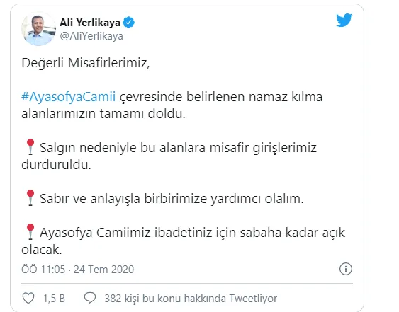 İstanbul Valiliği Ayasofya Camii girişleri son dakika durdu mu? Ayasofya'ya girişler neden kapatıldı?