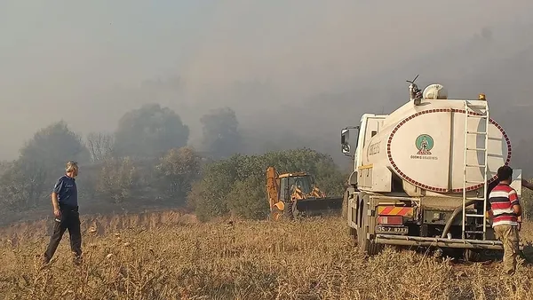 İzmir'in Ödemiş ilçe merkezinin Ahrandı bölgesinde henüz belirlenemeyen nedenle yangın çıktı.