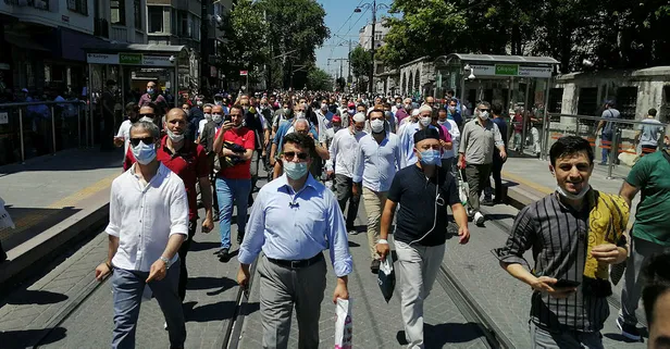 Tramvay seferleri durunca binlerce kişi Ayasofya Camii'ne yürüdü