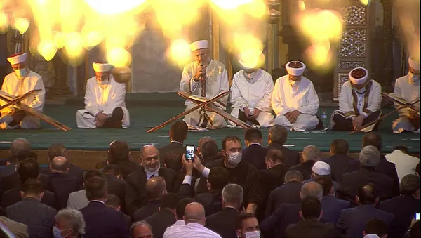 Televizyon kanalları, Cumhurbaşkanı Recep Tayyip Erdoğan'ın cami içerisinde namaz öncesinde Kur'an-ı Kerim okumasını da ekranlarına canlı olarak aktardı.