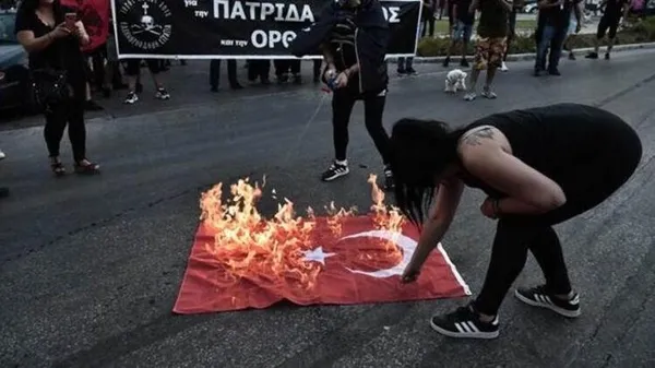 Bayrak yakılmasını "En şiddetli şekilde kınadığını" belirten Yunan Dışişleri ise Dışişleri Sözcüsü Aksoy'a cevabında "Uluslararası kamuoyu, Türkiye'nin dini ve milliyetçi fanatizm heyezanlarını şaşkınlıkla izlemektedir. Cevap vermeye değmez" diye küstah bir ifade kullandı.