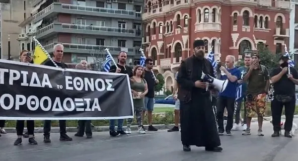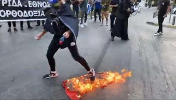 Selanik'te ise Hagia Sophia kilisesinde düzenlenen dini ayinden sonra, neonazi 'Altın Şafak' ve 'Kutsal Tabur' örgütlerinin üyeleri, kilisenin önünde ve Türkiye Başkonsolosluğu'na 150 metre masefede 2 Türk bayrağı yakmıştı.