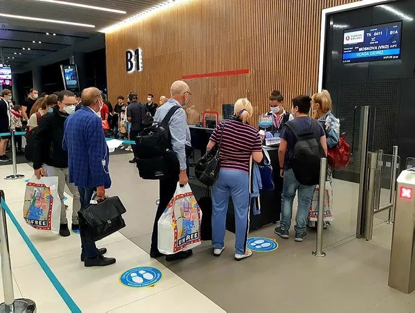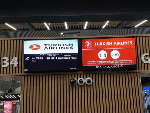 Türkiye ve Rusya arasındaki uçuş yasağının kaldırılmasının ardından THY, İstanbul - Moskova hattında ilk tarifeli seferini düzenledi. Akşam saatlerinden itibaren Moskova'ya uçmak için İstanbul Havalimanı'na gelen yolcular, güvenlik kontrolünün ardından dış hatlar gidiş terminalinde sosyal mesafe kuralları içerisinde bilet ve bagaj işlemlerini gerçekleştirdi.