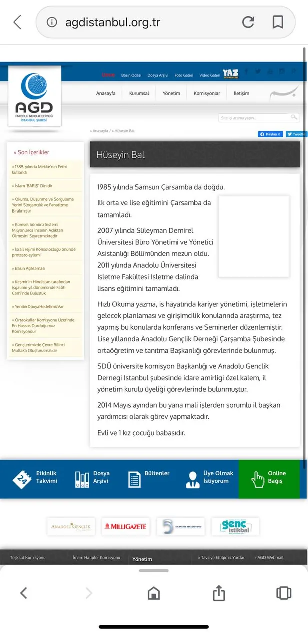 İbrahim Kalaycı (Sadabad Lojistik Eğitim ve Danışmanlık ve Tanıtım A.Ş. Yönetim Kurulu Üyesi): Anadolu Gençlik Derneği İstanbul İl Başkanlığı'nda görev yapıyor.