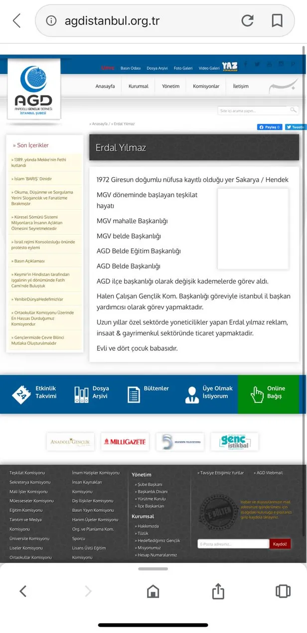 Erdal Yılmaz (Sadabad Lojistik Eğitim ve Danışmanlık ve Tanıtım A.Ş. Yönetim Kurulu Üyesi): MGV döneminde başlayan teşkilat hayatı, MGV Mahalle Başkanlığı, MGV Belde Başkanlığı, Anadolu Gençlik Derneği Belde Eğitim Başkanlığı, AGD Belde Başkanlığı, AGD ilçe başkanlığı olarak değişik kademelerde görev aldı. Halen Çalışan Gençlik Komisyon Başkanlığı göreviyle AGD İstanbul İl Başkan Yardımcısı olarak görev yapmakta.