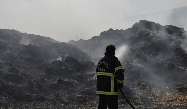 Gaziantep'te hayvan çiftliğindeki yangında 300 ton saman ve 100 ton yonca kül oldu