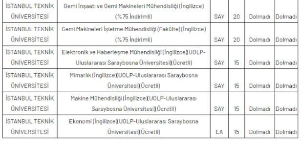 İTÜ İstanbul Teknik Üniversitesi YKS 2020 üniversite taban tavan puanları