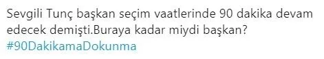 Sevgili Tunç başkan seçim vaatlerinde 90 dakika devam edecek demişti.Buraya kadar miydi başkan? #90DakikamaDokunma
