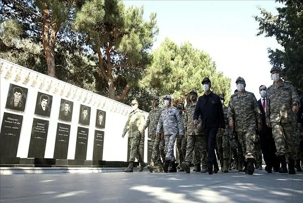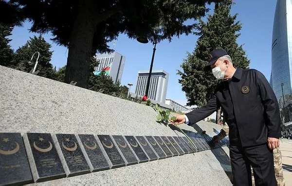 Azerbaycan ve Türk Şehitliği'ni ziyaret eden Akar ve TSK komuta kademesi saygı duruşunda bulundu, Türk Şehitliği'ndeki temsili mezarlara karanfil bıraktı. Şeref Defteri'ni de imzalayan Bakan Akar, şunları söyledi: