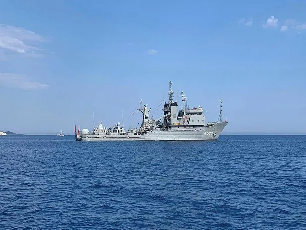 Türk Deniz Kuvvetleri'ne bağlı fırkateynler zaman zaman seyre çıkıyor. Römorkor ise Çayağzı Limanı açıklarında bekliyor.