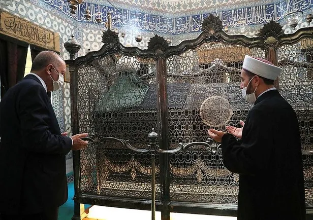 Sayın Cumhurbaşkanımız saat 15.00'teki Millete Sesleniş konuşmasından önce Cuma Namazını eda etmek üzere Eyüp Sultan Camii Şerifi'ne geldi; Eyüp Sultan Hazretlerinin manevi huzurunda dua etti. Bugünümüze binlerce kez hamdolsun. #MüjdelerOlsun pic.twitter.com/krvsrDrAl1