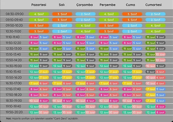 Paylaşımda ayrıca 1'inci sınıflar hariç, 2-12'nci sınıf öğrencilerinin canlı ders programı tablosuna yer verildi.