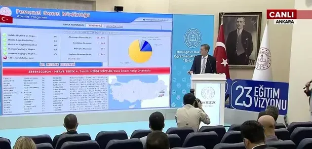 Salondaki ekranda adayların atandığı iller ve okulları paylaşıldı. Bakanlık kadrolarında görev yapmak üzere 19 bin 910 sözleşmeli öğretmen atandı. 20 bin sözleşmeli öğretmen ataması kapsamında, milli sporculardan beden eğitimi alanına 90 öğretmen ataması daha önce yapılmıştı.