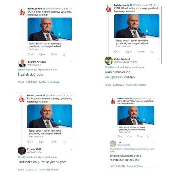Yıldırım'ın hastaneye kaldırıldığı yalanını ortaya atan CHP'li medyanın sosyal medya hesapları altında yapılan çirkin yorumlar ise tepki çekti.