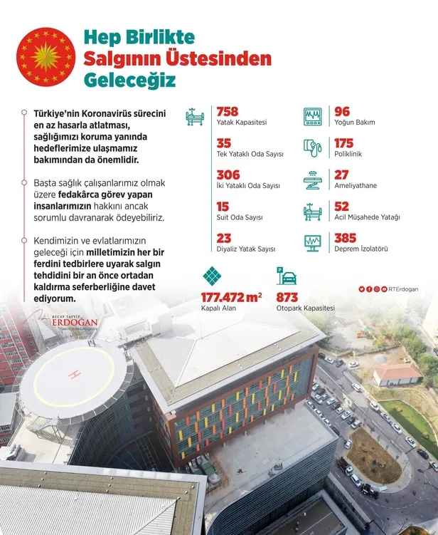 Başkan Recep Tayyip Erdoğan sosyal medya hesabı Twitter üzerinden bugün hizmete alınan Göztepe Prof. Dr. Süleyman Yalçın Şehir Hastanesi ile ilgili 'hayırlı olsun' paylaşımında bulundu.