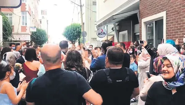 Sosyal mesafenin hiçe sayıldığı anlarda herkesin maskesiz olması dikkat çekti.