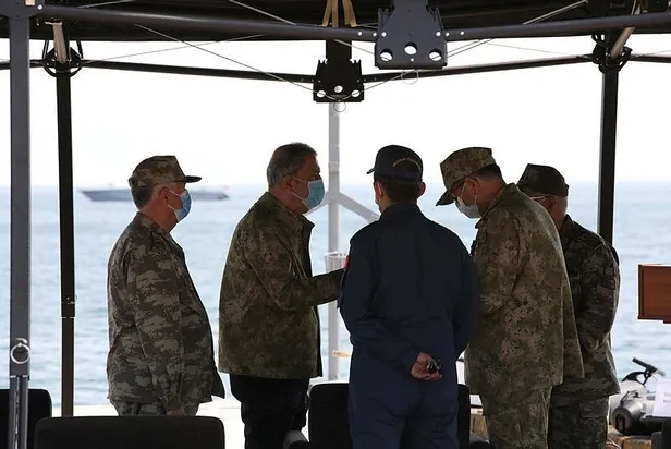 Son dakika haberie göre, Milli Savunma Bakanı Hulusi Akar, "Kardak kahramanları" olarak bilinen Deniz Kuvvetleri Komutanlığının seçkin birliği SAT personeliyle bir araya geldi. Bakan Hulusi Akar ve TSK komuta kademesi, SAT timlerinin belirlenen hedefleri başarıyla imha ettiği tatbikatı takip etti. Bakan Akar, Doğu Akdeniz'deki gelişmelere ilişkin yaptığı açıklamada, "Hadlerini ve boylarını aşarak bize ders vermeye kalkanlar var. Bunları kabul etmemiz mümkün değil." dedi.