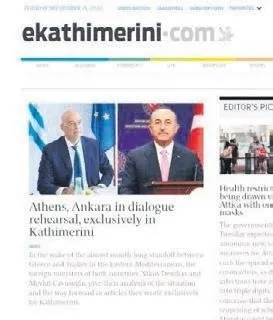 Yunan gazetesi "Kathimerini" için eş zamanlı makaleler kaleme alan Dışişleri Bakanı Mevlüt Çavuşoğlu ve Yunan mevkidaşı Nikos Dendias, iki ülke arasında "makale diplomasisini" başlattı.