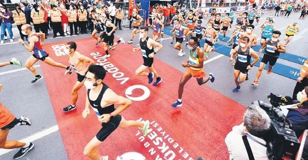 İstanbul'da 15’incisi düzenlenen Vodafone İstanbul Yarı Maratonu dün COVİD-19 tedbirleri ile yapıldı. 2 bin 500 kişinin katıldığı yarışta koşuculara sosyal mesafe uyarısı yapıldı. Hepsi maske taktı.