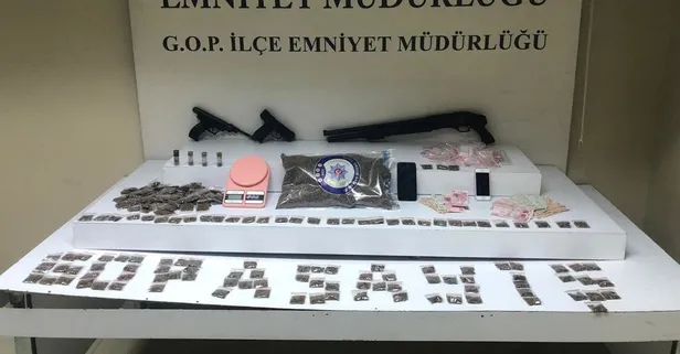 İstanbul Gaziosmanpaşa'da motosikletle uyuşturucu satışı yapan kişiyi takip eden Asayiş Büro Amirliği ekipleri 3 kişiyi gözaltına aldı. Uyuşturucu tacirlerinin evine yapılan aramada 1 kilogram uyuşturucu hap, 216 paket satışa hazır madde, 4 adet fişek ve 2 adet siyah havalı tabanca ile hassas teraziler geçirildi.