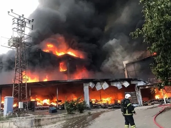 Yangın söndürme çalışmaları sırasında dumandan etkilenen bir itfaiye eri hastaneye kaldırıldı.