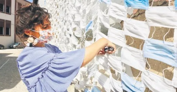 Eskişehir'de Özlem Kanat Örneksoy, salgına dikkat çekmek için kolları sıvadı. Bir evin dışını tam 2 bin 450 maske ile kapladı. "Maske takalım, hayatımıza sağlıklı ve güzel devam edelim" çağrısı yaptı