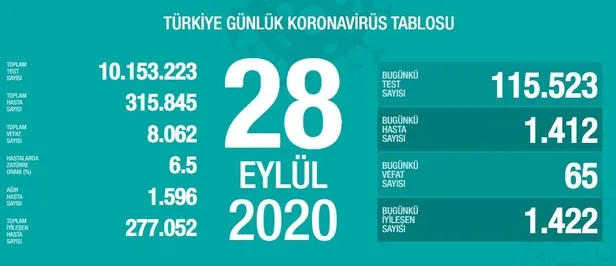 Toplam test sayısı 10 milyon 153 bin 223, vaka sayısı 315 bin 845, vefat sayısı 8 bin 62 olarak kayıtlara geçti.