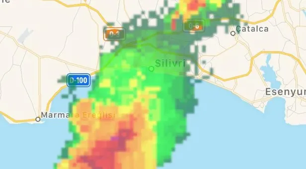 Silivri ve Büyükçekmece ilçelerinde şiddetli yağmur ve dolu başladı.