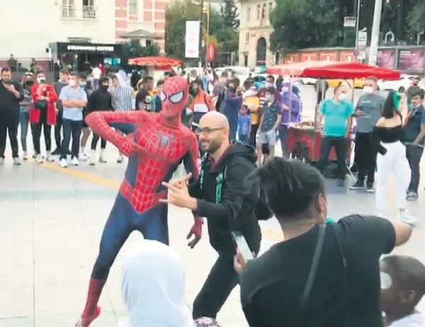 Şişli'de Örümcek Adam kostümü giyinen bir kişi, gösteri yaptı! Vatandaşı etrafında topladı. Kendisiyle fotoğraf çektirmek isteyenler, maskeleri çıkarttı. Sosyal mesafe hiçe sayıldı. Olaya tanık olanlar, şaşırdı: Virüs, bulaşmak için çok zorlanmamıştır!