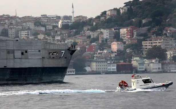 ABD Donanmasına ait gemiye, boğaz geçişi sırasında Sahil Güvenlik botları da eşlik etti.