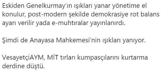 "VESAYETÇİ AYM, MİT TIRLARI KUMPASÇILARINI KURTARMA DERDİNE DÜŞTÜ"