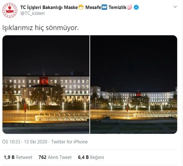 Anayasa Mahkemesi üyesi Engin Yıldırım'ın vesayetçilerin ağzıyla yaptığı skandal paylaşıma tepkiler gecikmedi. İçişleri Bakanlığı, Yıldırım'ın skandal göndermesine "Işıklarımız hiç sönmüyor" paylaşımını yaparak cevap verdi.