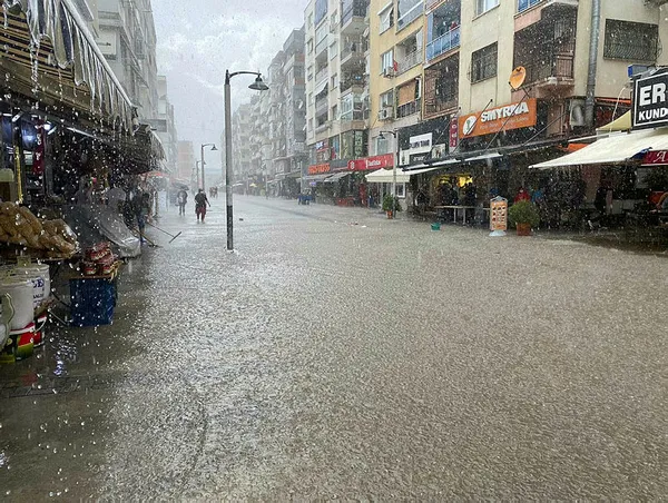 Kentteki cadde ve sokaklar da yağmur suyuyla dolup taştı. Kemeraltı'ndaki bazı iş yerlerinde de yine su baskını oldu.