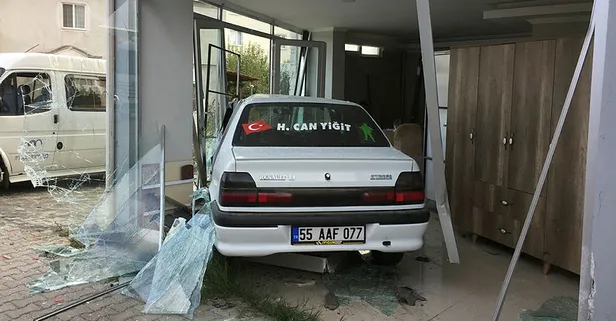 Samsun'da sürücüsünün kontrolünden çıkan bir otomobil, mobilya dükkanına daldı. Öğle saatlerinde yaşanan kazada 2'si müşteri olmak üzere 4 kişi yaralandı.