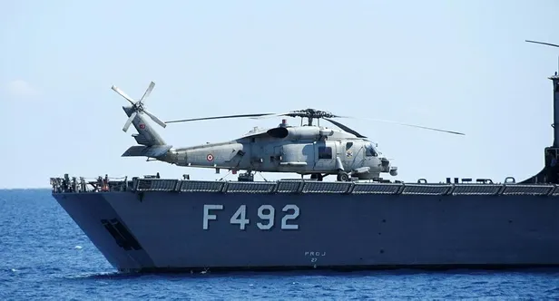 Pazar günü akşam saatlerinde Demre'ye gelen 2 fırkateyn, Demre'nin Çayağzı Limanı açıklarında demir attı.