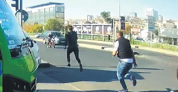 Şehir magandası dehşet saçtı. Olay dün İstanbul Kağıthane'de yaşandı. Otomobil sürücüsü ile motosikletli arasında yol nedeniyle tartışma çıktı. Öfkeli adam, kaskını aldığı motosikletli genci tokatladı.