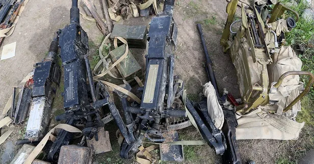 Bakanlık, ele geçirilen askeri teçhizatların ve araçların görüntülerini paylaştı.
