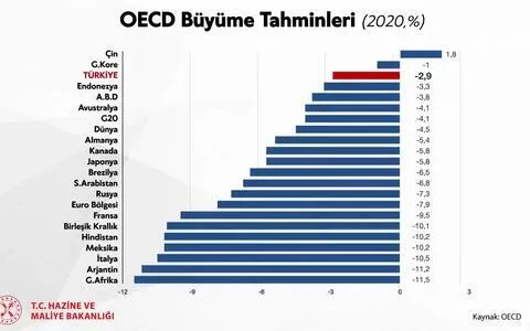 Ekonomik İşbirliği ve Kalkınma Örgütünün (OECD) "Eylül 2020 Ara Dönem Ekonomik Görünüm Raporu" tahminlerine göre Çin ve Güney Kore'den sonra yeni tip korona virüsten en az etkilenecek üçüncü ülke Türkiye oldu.
