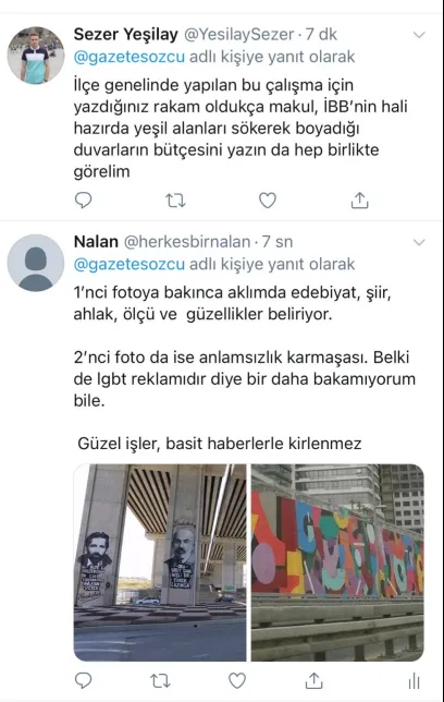 CHP’nin yayın organı olduğu iddia edilen Sözcü Gazetesi; ülkemizin gurur kaynağı haline dönüşen şehit, düşünür ve sanatçıların resimleri ve hafızalardan silinmeyen sözlerini duvarlara işlenerek ölümsüzleştirilmesinden rahatsız oldu. Sözcü Gazetesi’nin haberinde, söz konusu uygulamanın israf olduğu iddia edildi.