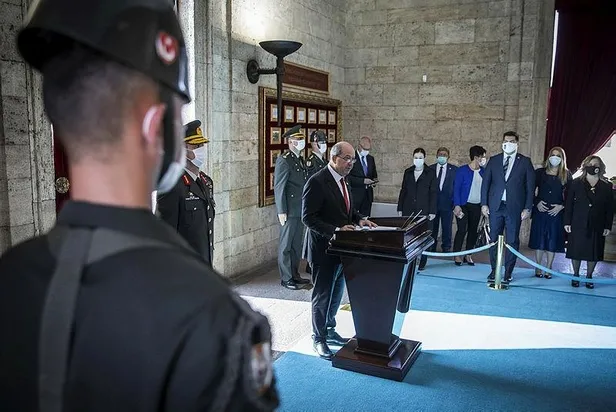 Son dakika: Başkan Erdoğan'ın davetlisi olarak Ankara'ya gelen KKTC Cumhurbaşkanı Ersin Tatar Anıtkabir'i ziyaret etti