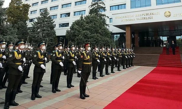 Akar'ı Özbekistan Savunma Bakanı Bahadır Kurbanov, Savunma Bakanlığı'nda düzenlenen askeri törenle karşıladı. Askeri bando tarafından ulusal marşların çalınmasının arından yapılan geçit töreninde Bakan Akar, tören kıtasını selamladı.