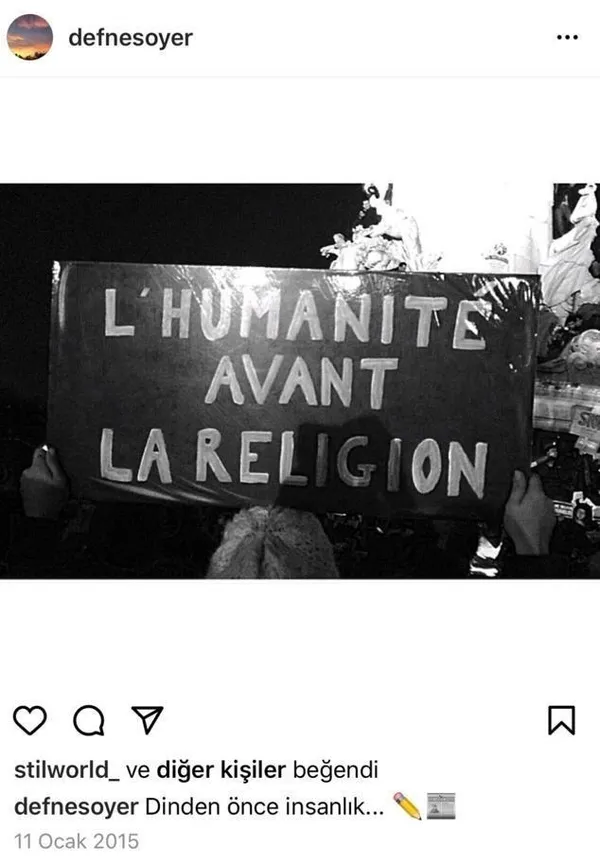 İzmir Belediye Başkanı Tunç Soyer'in kızı Defne Soyer'in de; fotoğraf paylaşım sitesi Instagram'daki şahsi hesabından "Dinden önce insanlık" ifadeleri yazdığı ve konuya ilişkin fotoğraf paylaştığı öğrenildi.